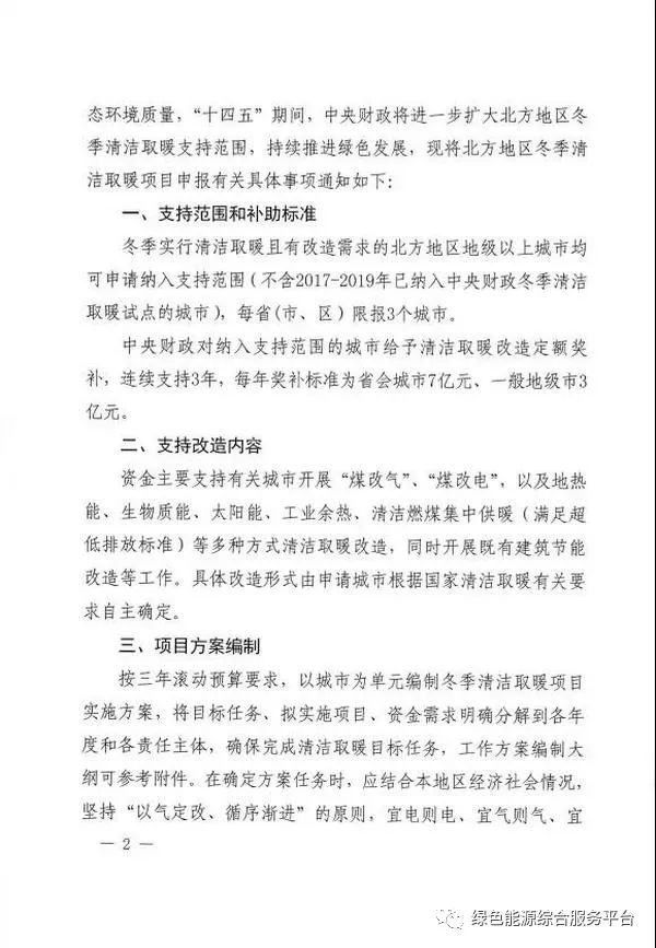 支持改造内容包括:“煤改气”、“煤改电”,以及地热能、生物质能、太阳能、工业余热、清洁燃煤集中供暖(满足超低排放标准)等多种方式清洁取暖改造。申报截止时间为2021年4月10日。