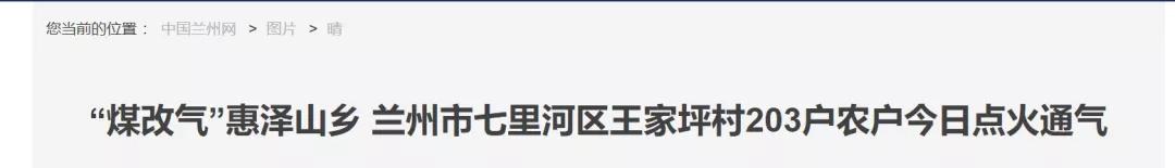 12月22日,兰州市七里河区西果园王家坪村203户农户通气点火,这标志着王家坪村村民全部用上天然气。
