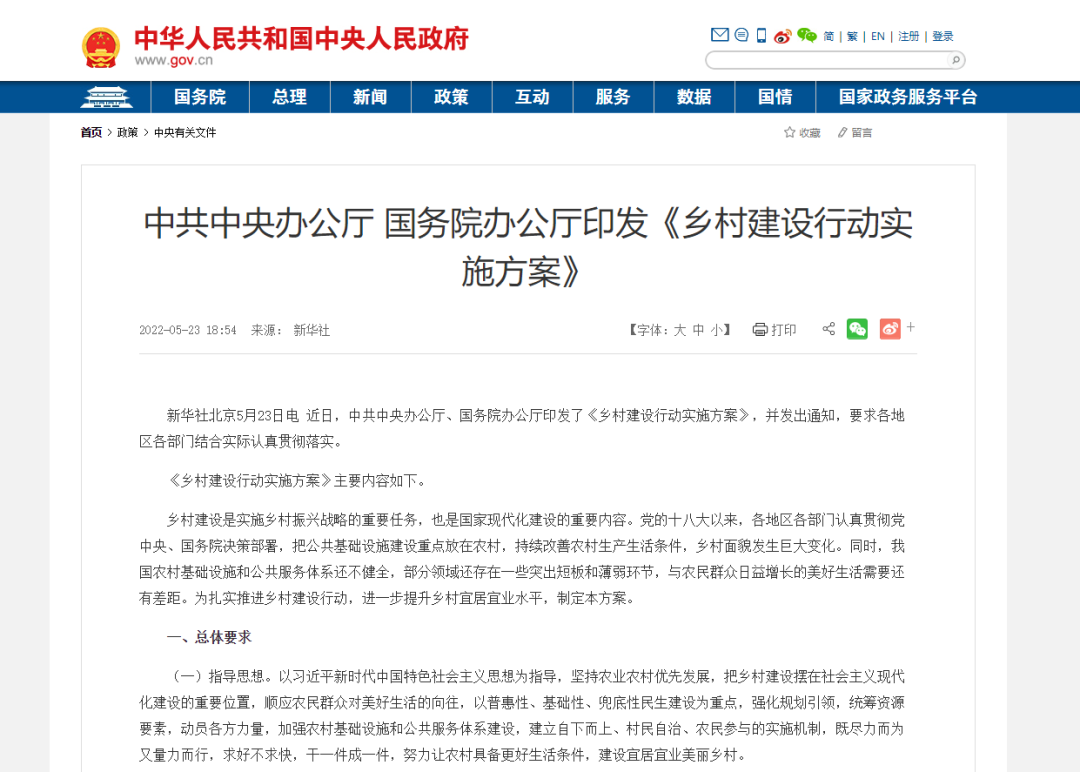 乡村建设是实施乡村振兴战略的重要任务,也是国家现代化建设的重要内容。党的十八大以来,各地区各部门认真贯彻党中央、国务院决策部署,把公共基础设施建设重点放在农村,持续改善农村生产生活条件,乡村面貌发生巨大变化。同时,我国农村基础设施和公共服务体系还不健全,部分领域还存在一些突出短板和薄弱环节,与农民群众日益增长的美好生活需要还有差距。为扎实推进乡村建设行动,进一步提升乡村宜居宜业水平,制定本方案。