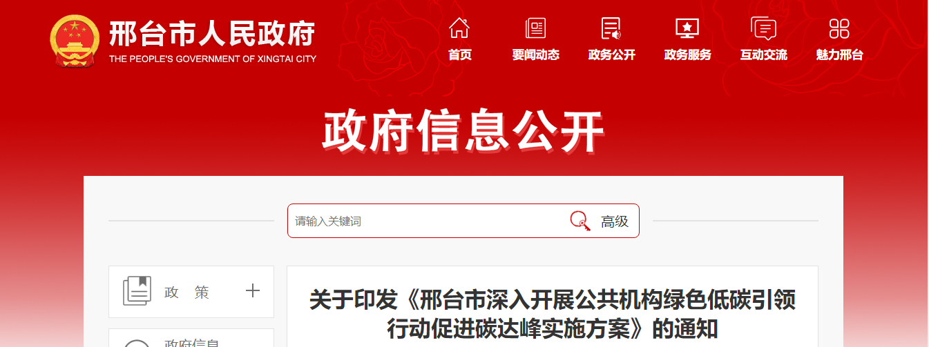 近日,邢台市人民政府发布关于印发《邢台市深入开展公共机构绿色低碳引领行动促进碳达峰实施方案》的通知,方案中提到,推动公共机构终端用能以电力替代煤、油、气等化石能源直接燃烧利用,提高办公、生活用能清洁化水平。实施供暖系统电气化改造,结合清煤降氮锅炉改造,鼓励因地制宜采用空气源、地源热泵等清洁用能设备替代燃煤、燃油、燃气锅炉。到2025年,全市公共机构燃煤锅炉全部淘汰使用,全市公共机构实现清洁取暖。