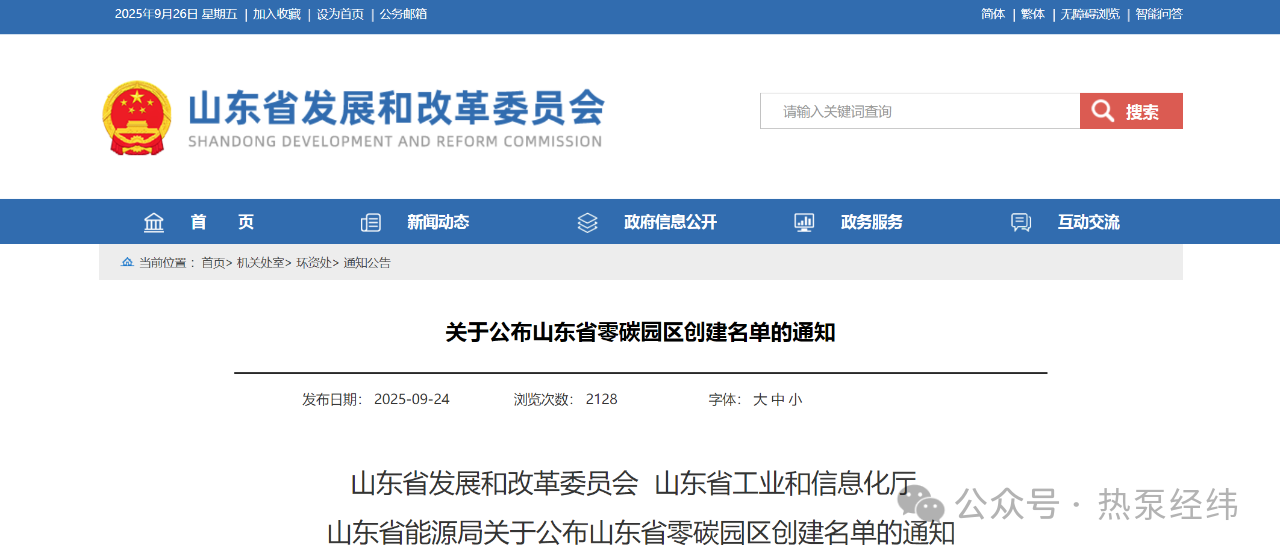 24日,山东省发改委官网发布山东省发展和改革委员会 山东省工业和信息化厅 山东省能源局关于公布山东省零碳园区创建名单的通知。根据通知内容显示,共有济南、青岛、淄博、枣庄、烟台、潍坊、济宁、泰安、威海、日照、临沂、德州、聊城、滨州、菏泽等地18个园区入选。另烟台市丁字湾新型能源创新区零碳园区、东营市东营时代零碳园区申报国家级零碳园区,如未能成功纳入国家零碳园区建设名单,自动进入省零碳园区创建名单。